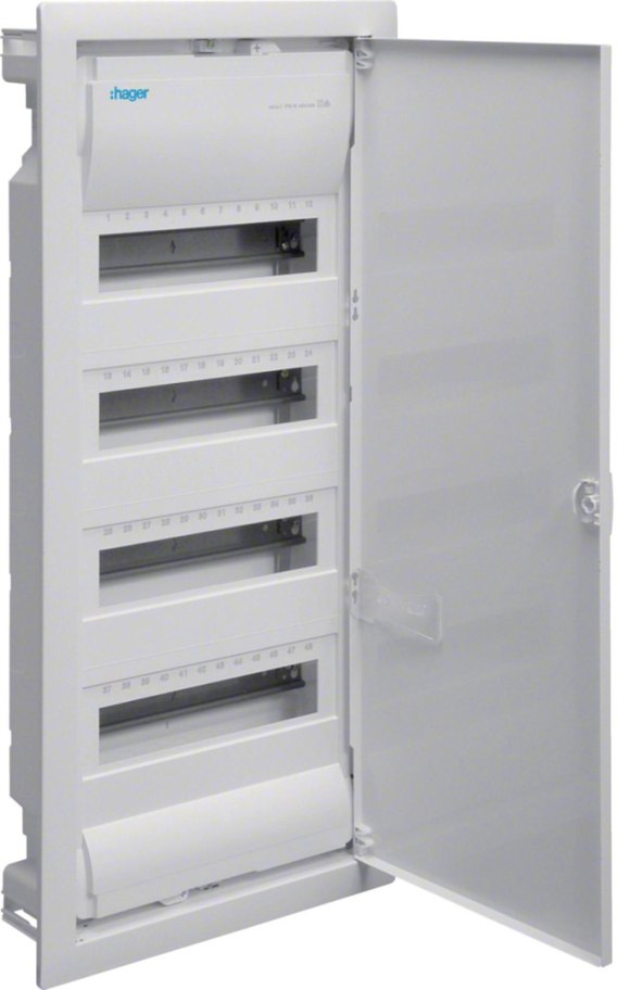 Rozdzielnica podtynkowa z drzwiami metal., 4 rzędy, 48 mod, IP30, QC, HAGER Volta VU48AT