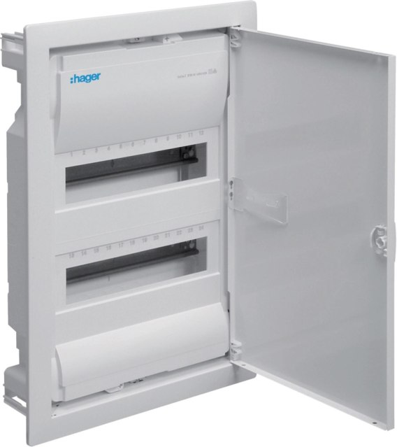 Rozdzielnica podtynkowa z drzwiami metalowymi, 2 rzędy, 24 moduły, IP30, QC, HAGER Volta VU24AT